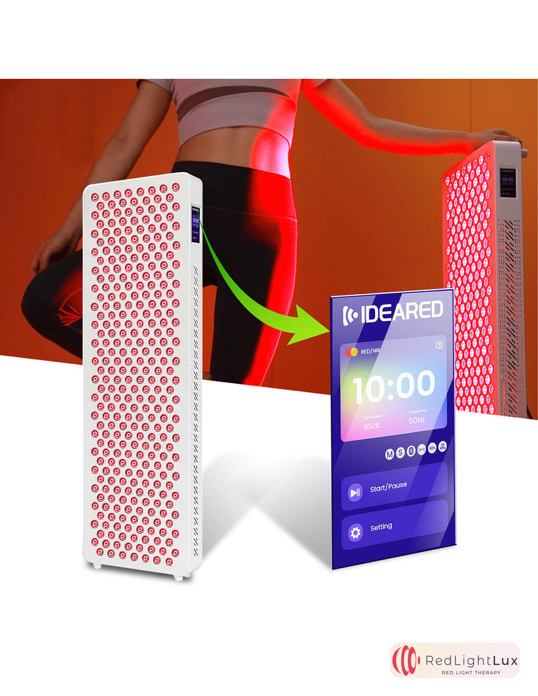 Le panneau de thérapie par lumière rouge Mega dispose d'un panneau pour la moitié du corps qui peut cibler soit le haut soit le bas du corps en une seule séance. Ce design vous permet d'intégrer facilement la thérapie par lumière rouge dans votre routine de bien-être quotidienne, avec seulement 10 minutes par jour.